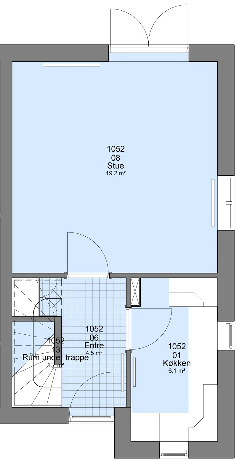 Komfur og emhætte tilknyttet, Køle- og fryseskab medbringer lejer selv.